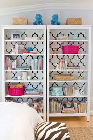 Line the back of cabinets, shelves and bookcases with your favorite wallpaper for that added color and style.